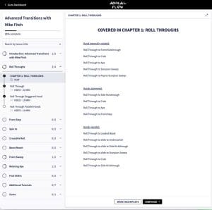 The course is divided into 9 lessons (chapters), with each focused on a different S&T or FSS. The last lesson is a combination of additional transitions and new S&Ts. For each lesson, Mike breaks down a variety of transitions based around the movement highlighted in that chapter.
