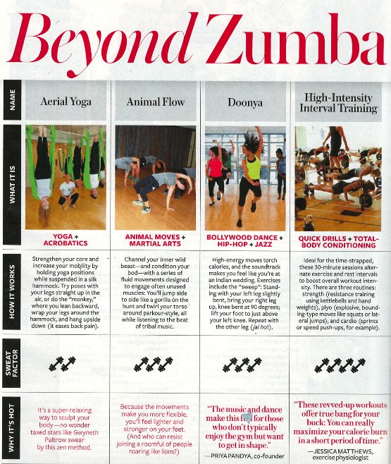 “A mash-up of drills and moves from the wide-ranging practices keeps things interesting and utilizes only your body weight to build strength, endurance, and flexibility. A super-bal-anced body with nary a dumbbell in sight? Sign us up.”