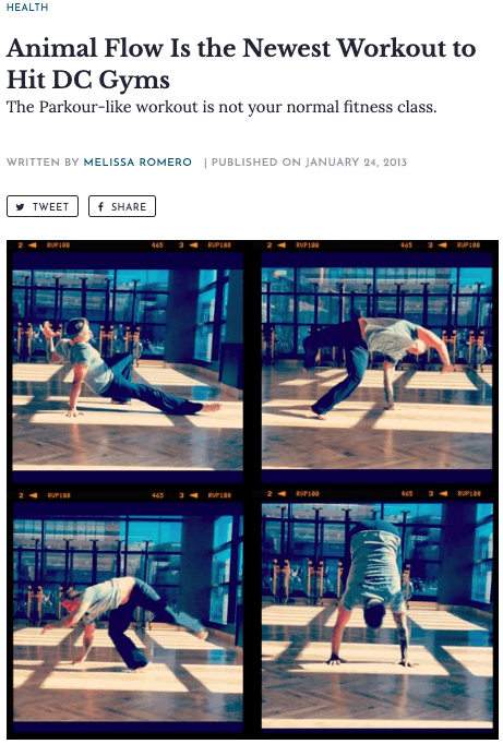 “Like thinking of yourself as a beast when you work out? Then Animal Flow is for you.”