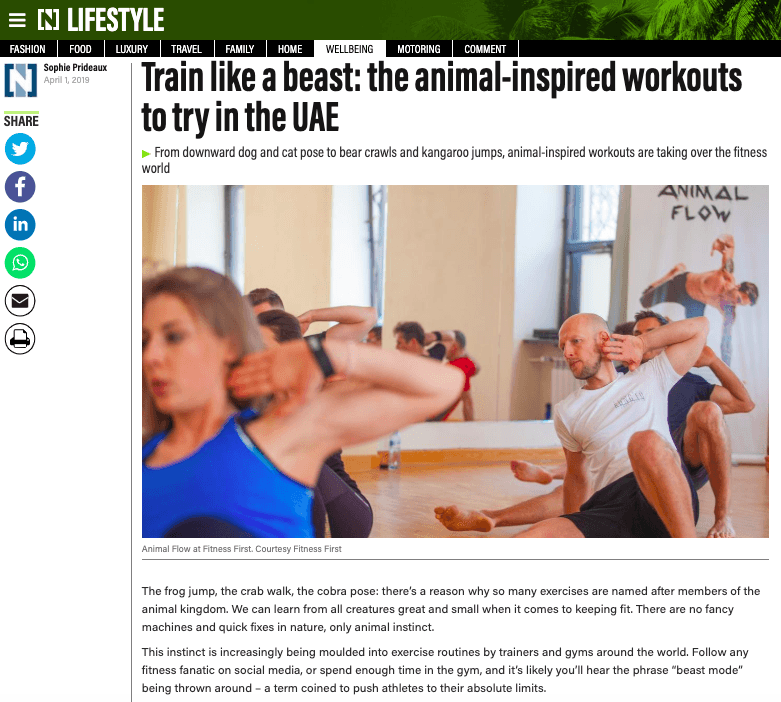 "A new kind of beast-mode workout has arrived in the UAE. Fitness First gyms across the Emirates are offering Animal Flow classes, a trademarked workout created by American fitness instructor Mike Fitch."