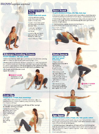 “The super-low, thigh-sculpting squats and ab-chiseling crawls may look straight out of a safari, but try them twice a week this month and you'll go wild for the results.”