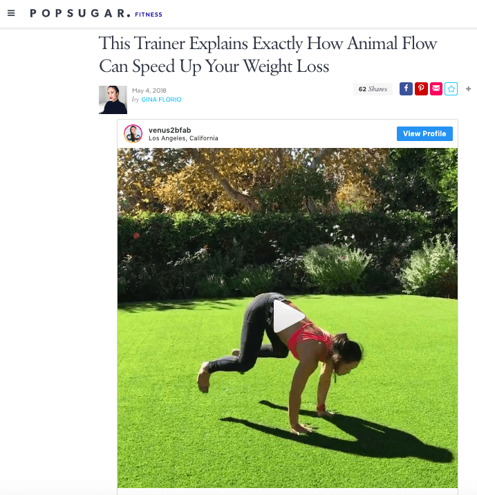"Venus Lau — Animal Flow expert, certified trainer, and yoga teacher — knows firsthand how Animal Flow can change your body. She has been incorporating this workout into her clients' programs for years, and she's seen tremendous results. We asked Venus why Animal Flow is great for weight loss, and she gave us the inside scoop."