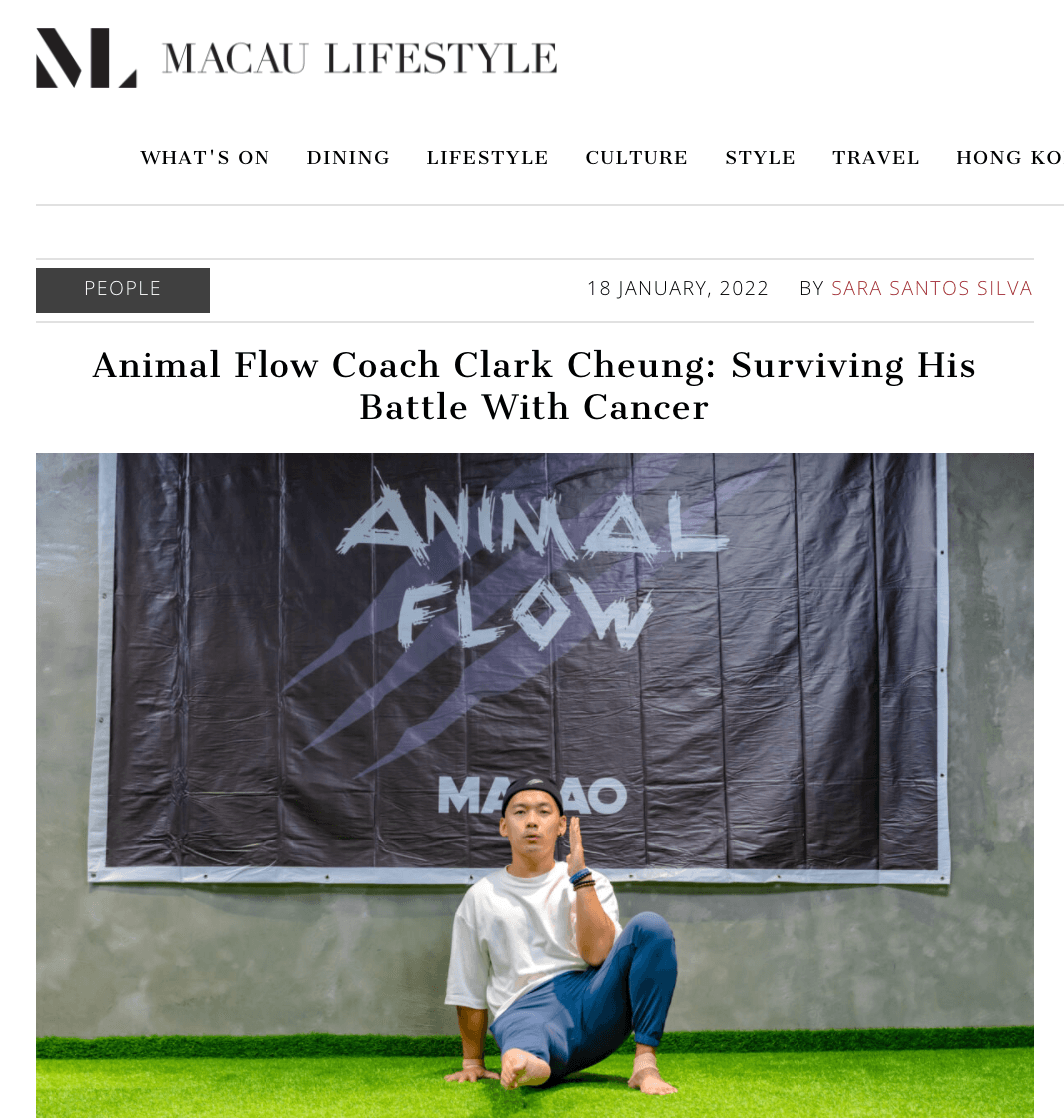 Animal flow regional leader and coach Clark Cheung was at the peak of his career when he unexpectedly had to face the hardest battle of all: cancer. Clark led an active and healthy lifestyle when he was diagnosed with a stage IV follicular lymphoma that had metastasized to his bone marrow at the shy age of 34. After the shock, his coach mindset kicked in and he grasped the nettle as he coped with chemo cycles like they were high-intensity training. Although giving himself up to commiseration would be more than understandable, the passionate animal flow coach made a choice to see cancer in a different way. After being diagnosed in April 2021, it only took him three months to get back to teaching animal flow, a workout he first introduced in town and a driving force in his life...