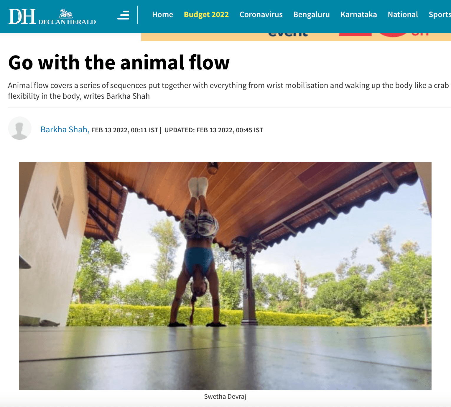 Master Instructor Swetha Devraj is on all fours, flowing from one movement to another. She stands on her hands and then laterally travels like an ape, gradually moving to stretch like a crab. Her arms and legs scream for relief. But she refuses to stop.