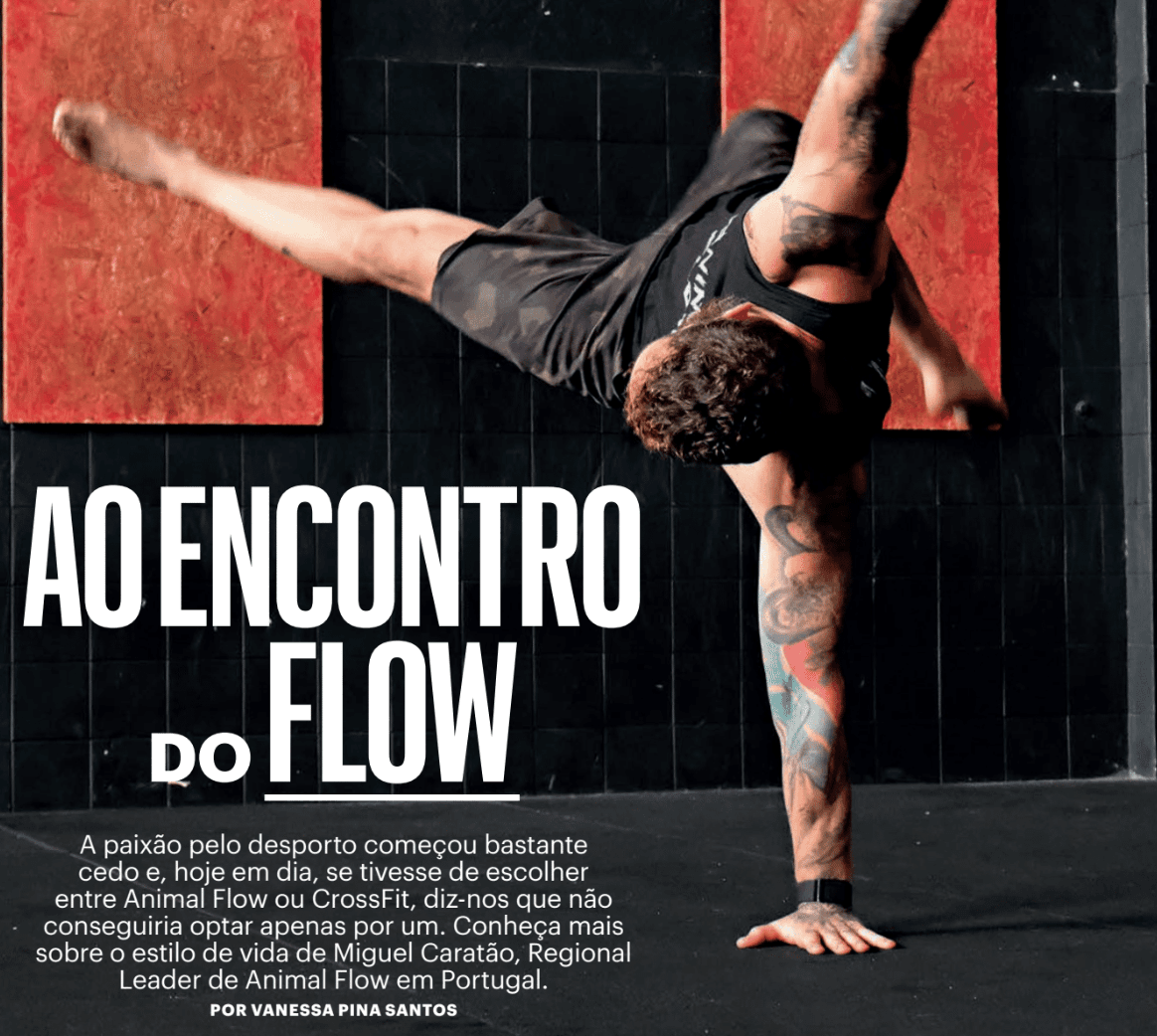 Master Instructor Miguel Caratão in Mens Health Portugal.A paixão pelo desporto começou bastantecedo e, hoje em dia, se tivesse de escolherentre Animal Flow ou CrossFit, diz-nos que nãoconseguiria optar apenas por um. Conheça maissobre o estilo de vida de Miguel Caratão, Regional Leader de Animal Flow em Portugal.