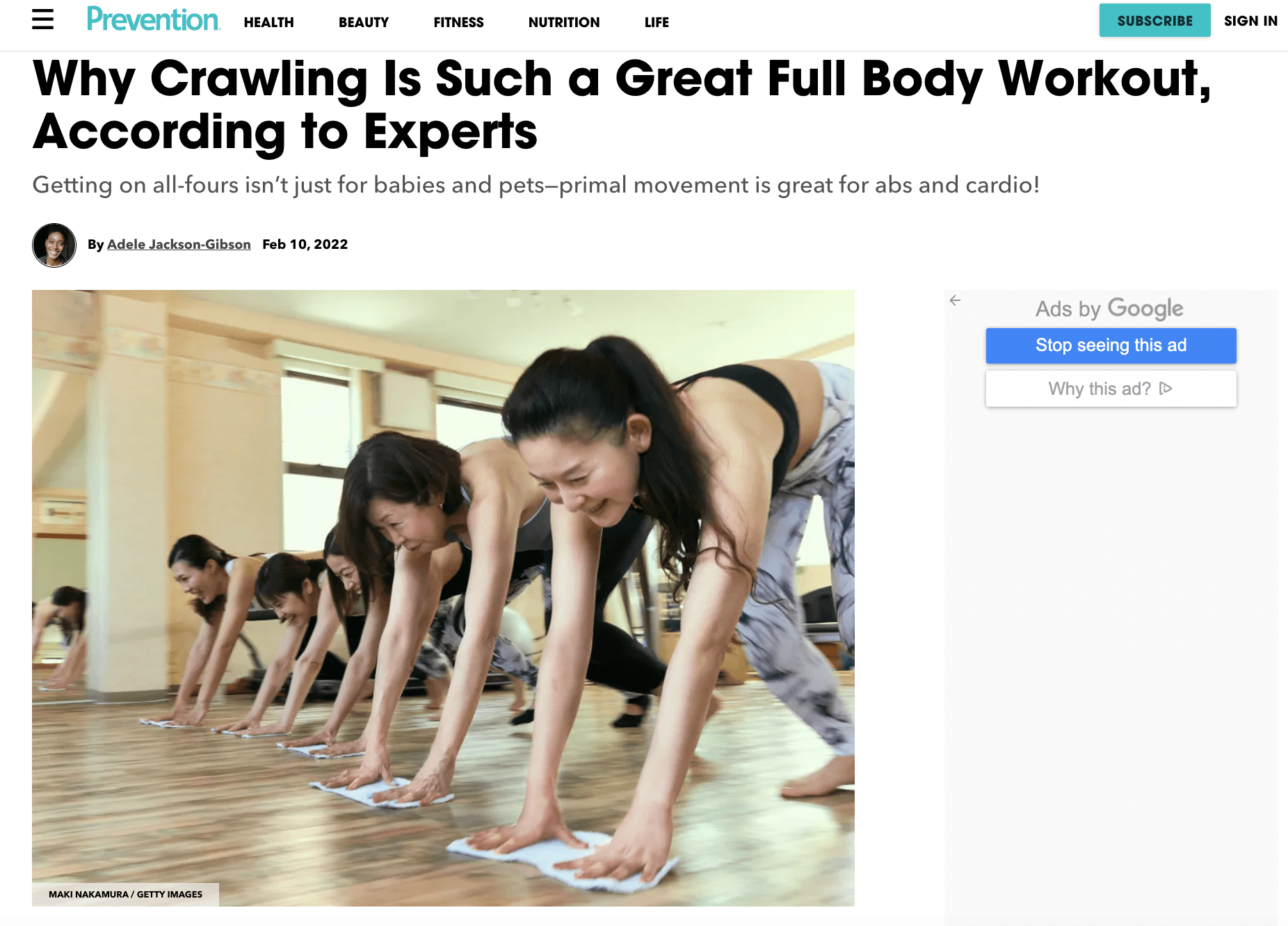 Why Crawling Is Such a Great Full Body Workout, According to Experts. Getting on all-fours isn’t just for babies and pets—primal movement is great for abs and cardio!